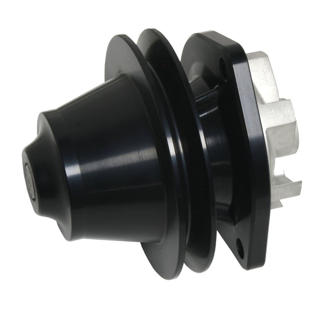 Precision CNC-machined from solid aluminium, this component, our black anodised billet water pump & pulley is the highest quality water pump on the market.