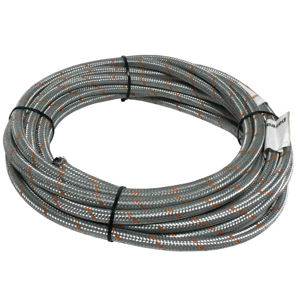 - Stainless steel braided rubber hose with orange flecks which is produced to withstand modern fuel additives, up to E15
